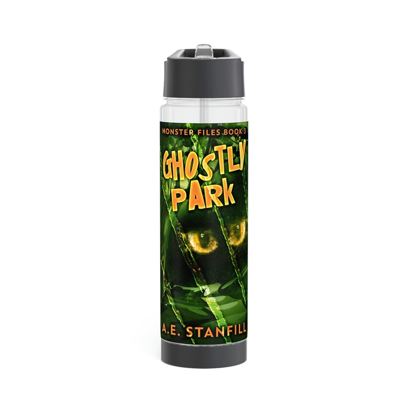 Add flavor and personality to your water with this infuser bottle. Twist the base off to access the infuser and add fruits, tea leaves, or anything you desire to enhance the flavor of your water. On the top, you’ll find a twist-on lid with a flip-top drinking sprout for a seamless drinking experience. This infuser is excellent for using at home, during outdoor excursions, or at the gym as a sports bottle. The cover art in this infuser water bottle is from A.E. Stanfill’s book, Ghostly Park.