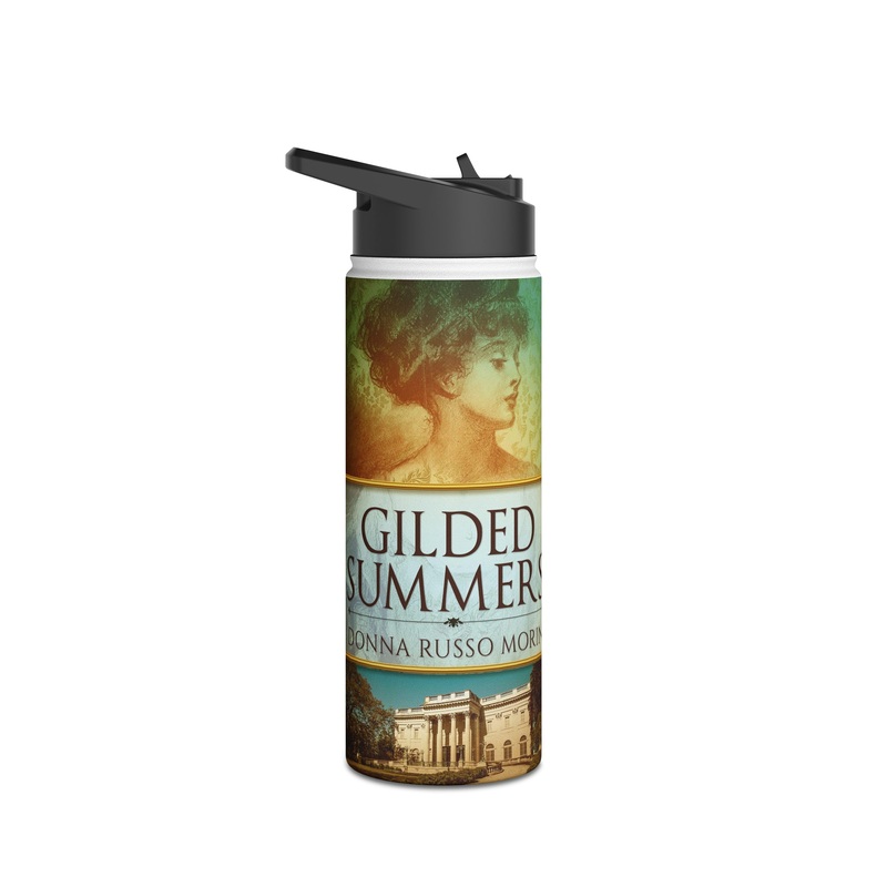 Quench your thirst in style with this 18oz stainless steel water bottle featuring a double-wall stainless steel build that keeps your drinks frosty for 24h and soothingly hot for 12h. This BPA-free, steel water bottle comes with a twist-on lid for easy sipping, making it excellent for daily use at work, at college, in the car, and beyond. The cover art in this water bottle is from Donna Russo Morin’s book, Gilded Summers.