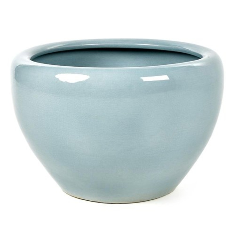 This blue ceramic planter is distinguished by its subtle cracked enamel and its rounded look, giving it a unique character that will delight lovers of vintage decor and antique objects. Thanks to its generous dimensions (34 cm in height and 51 cm in diamet
