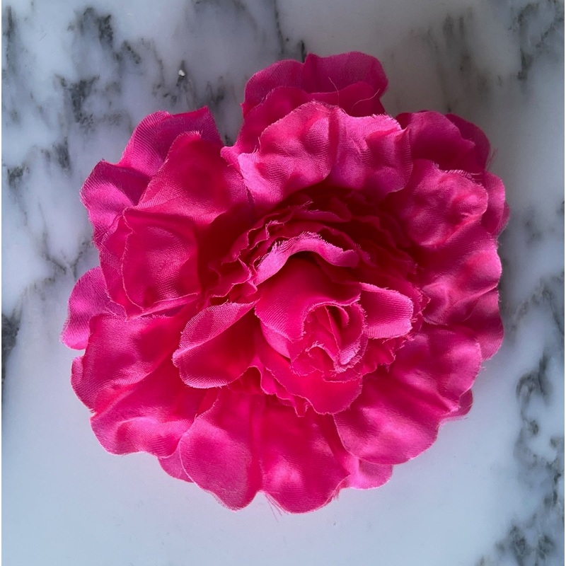 This glorious hot pink peony silk chrysanthemum is a swoon-worthy statement piece - use this stunning hand-crafted flower as a hair adornment or a brooch. Embellish an evening gown, a sports coat, a summer frock, or your favorite chapeau. Exclusive to Brit