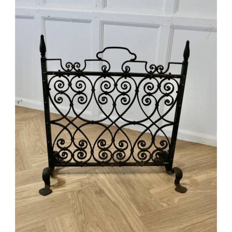 Very Heavy Old Gothic Wrought Iron Fire ScreenThis is a very attractive piece, the wrought iron work is superbly executed In good sound condition and a very attractive addition to any Fire PlaceThe screen, is 26 wide, 25 tall and 12 deep at the floor Desig