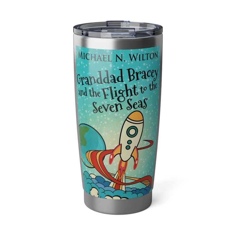 Minimize your plastic footprint with style. This tumbler fits perfectly into car cup holders, and the rubber gasket makes it spill-resistant on bumpier roads. The double-wall insulation makes sure drinks stay at the right temperature until the next pit stop. The cover art in this 20 oz tumbler is from Michael N. Wilton’s book, Granddad Bracey And The Flight To The Seven Seas.