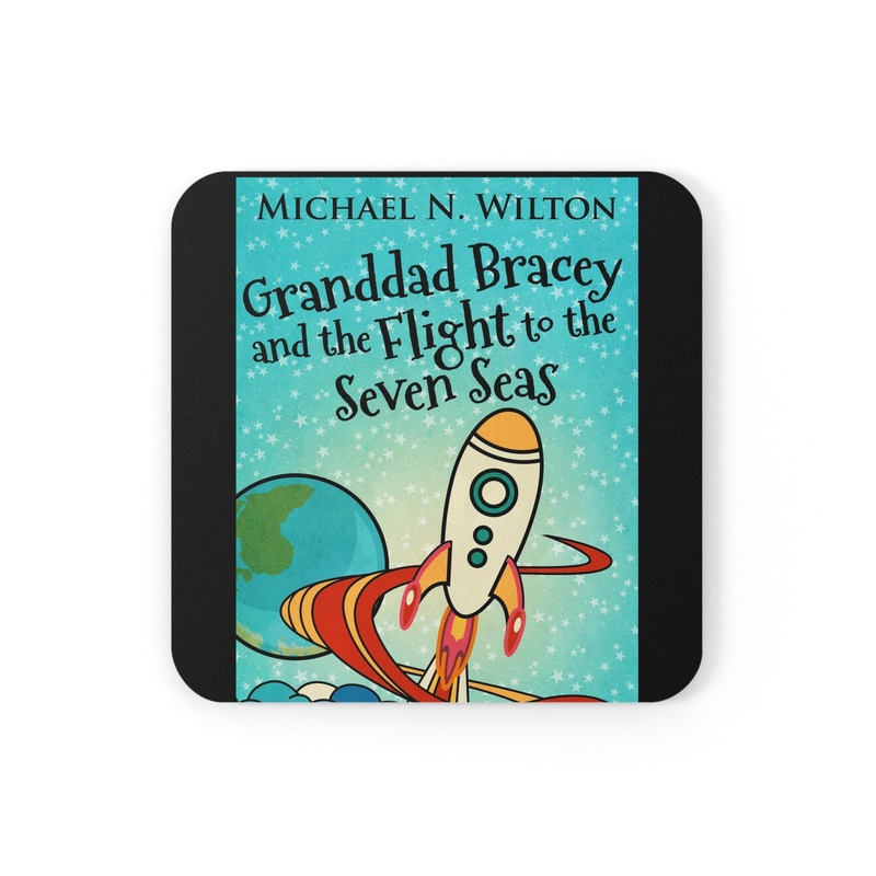 These coasters are made with a high-gloss top and feature a cork back to prevent sliding, and each order comes with a set of four coasters. The cover art in these coasters is from Michael N. Wilton's book, Granddad Bracey And The Flight To The Seven Seas.