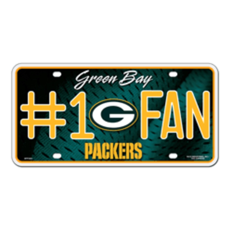 Officially licensed 6" x 12" Green Bay Packers #1 Fan NFL Embossed Metal License Plate Tag Sign. Made of high quality aluminum for a weather resistant finish. It is lightweight & durable. Pre-drilled holes for quick and easy mounting.