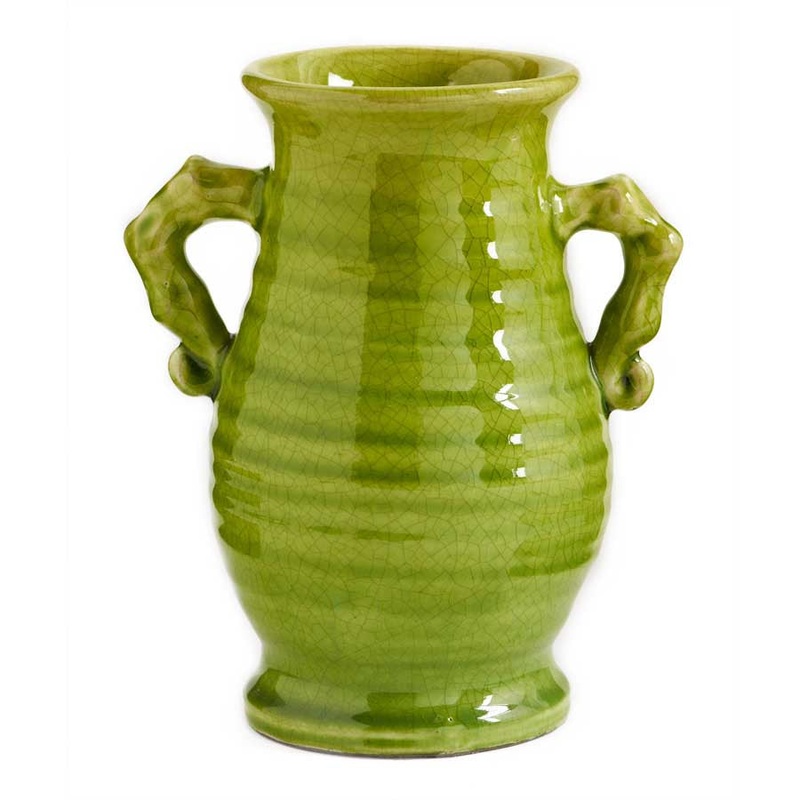 Green European Ceramic Jar w/2 Handles
