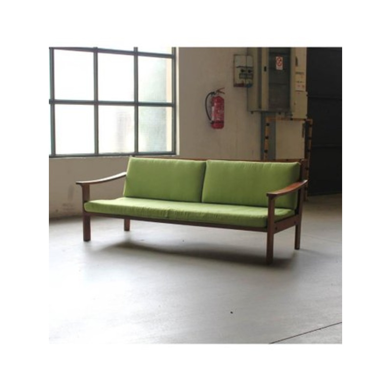 Type Green patio sofa (3 seater) Dating 1970-79 Model 3 seater Origin Italy Materials Teak, Cotton Width 168 cm Depth 85 cm Height 70 cm Seat Height 33 cm Design Period 1970 to 1979 Production Period 1970 to 1979 Style Vintage Detailed Condition Very Good
