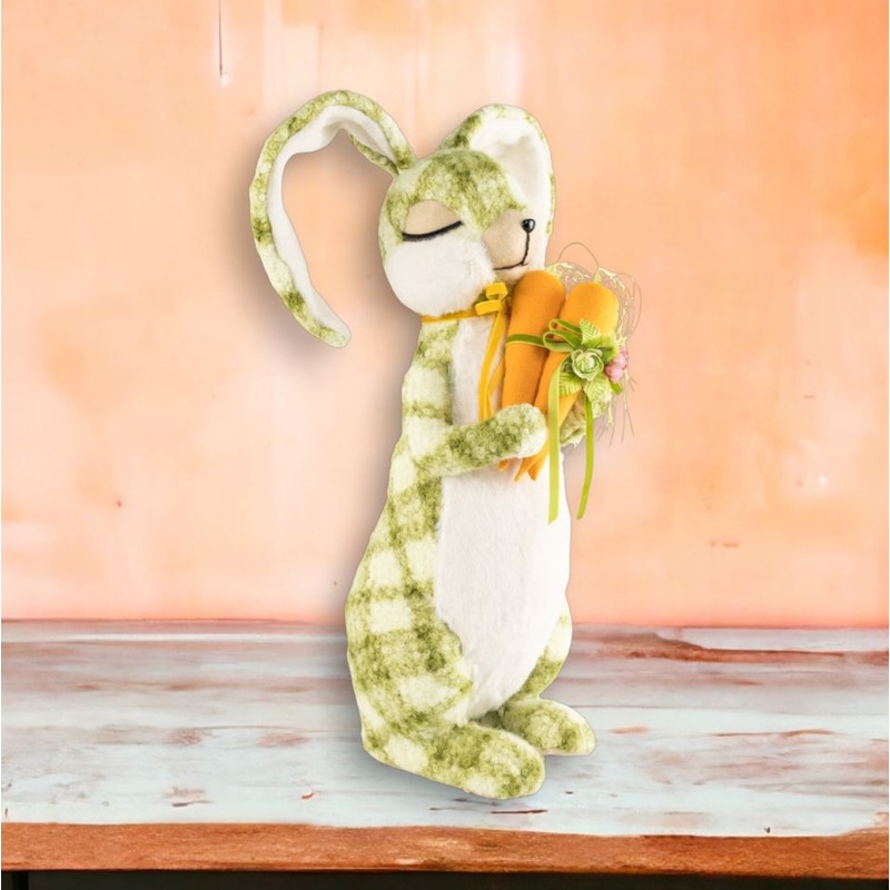 Green Standing Plaid Bunny w/Carrots