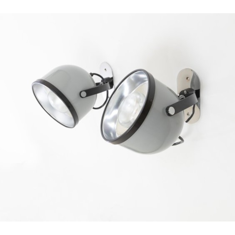 Pair of swiveling spots made of grey lacquered metal designed by Gae Aulenti and Livio Castiglioni for Stilnovo in the 1970s. The spots can also be used as ceiling lamps.