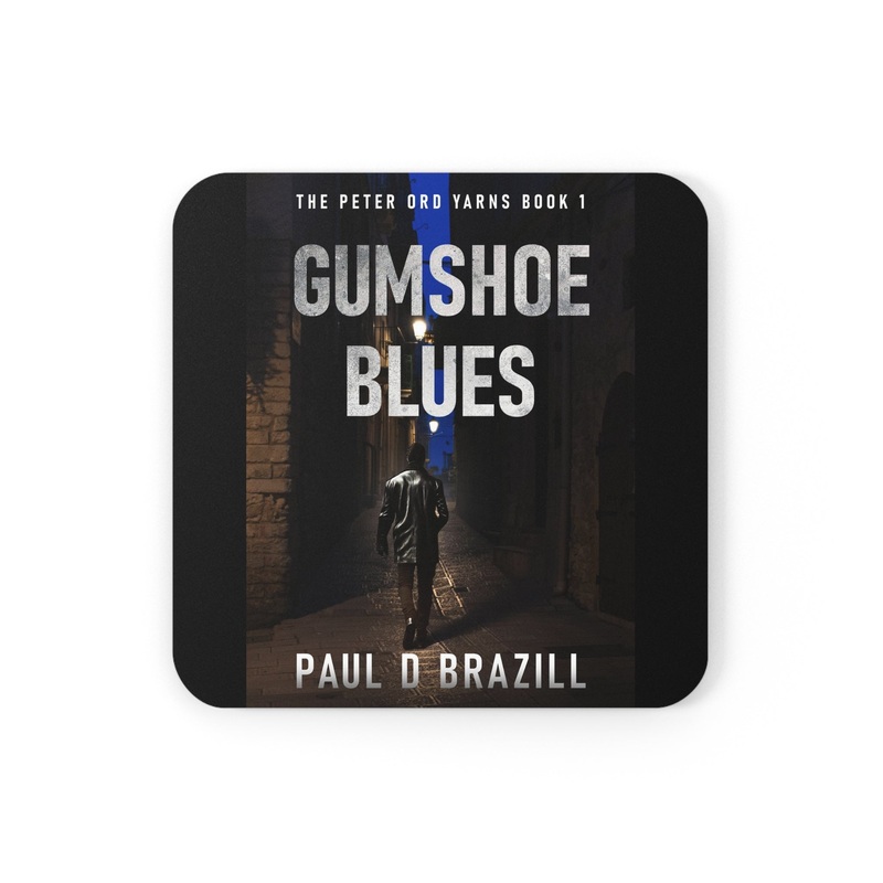 These coasters are made with a high-gloss top and feature a cork back to prevent sliding, and each order comes with a set of four coasters. The cover art in these coasters is from Paul D. Brazill’s book, Gumshoe Blues.