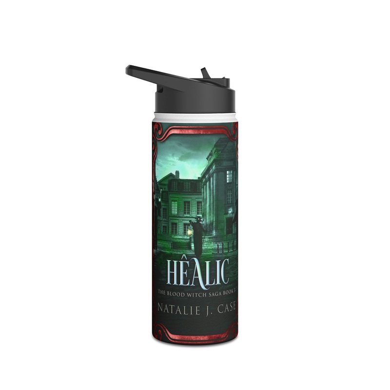 Quench your thirst in style with this 18oz stainless steel water bottle featuring a double-wall stainless steel build that keeps your drinks frosty for 24h and soothingly hot for 12h. This BPA-free, steel water bottle comes with a twist-on lid for easy sipping, making it excellent for daily use at work, at college, in the car, and beyond. The cover art in this water bottle is from Natalie J. Case’s book, Halic.