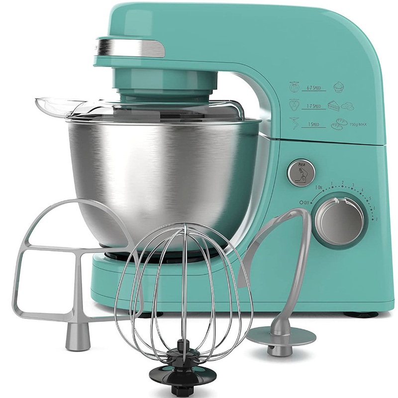 Hamilton Beach Electric Stand Mixer, 4 Quart Stainless Bowl, 7 Speeds, Tilt-Head, Dough Hook, Whisk and Flat Beater, Splash Guard, 300 WattsThorough Mixing and Complete Bowl CoverageThe Hamilton Beach Stand Mixer comes with 3 attachments for mixing versati