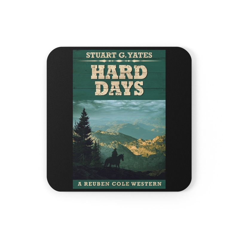 These coasters are made with a high-gloss top and feature a cork back to prevent sliding, and each order comes with a set of four coasters. The cover art in these coasters is from Stuart G. Yates's book, Hard Days.