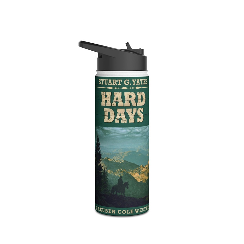 Quench your thirst in style with this 18oz stainless steel water bottle featuring a double-wall stainless steel build that keeps your drinks frosty for 24h and soothingly hot for 12h. This BPA-free, steel water bottle comes with a twist-on lid for easy sipping, making it excellent for daily use at work, at college, in the car, and beyond. The cover art in this water bottle is from Stuart G. Yates’s book, Hard Days.