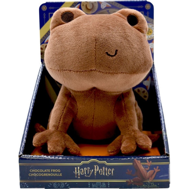 Inspired by the sweet in Honeydukes Sweet Shop, The Harry Potter Chocolate Frog Plush makes a great addition to any Harry Potter fans collection. Chocolate frogs are a popular confection sold throughout the Wizarding World. The plush Chocolate Frog sits on top of a platform box inspired by the classic box of candy, and brings new meaning to the word sweet for this charmingly detailed frog.