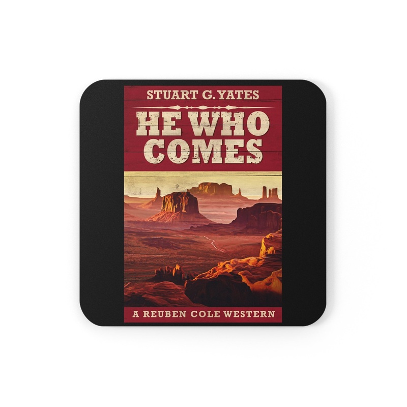 These coasters are made with a high-gloss top and feature a cork back to prevent sliding, and each order comes with a set of four coasters. The cover art in these coasters is from Stuart G. Yates's book, He Who Comes.