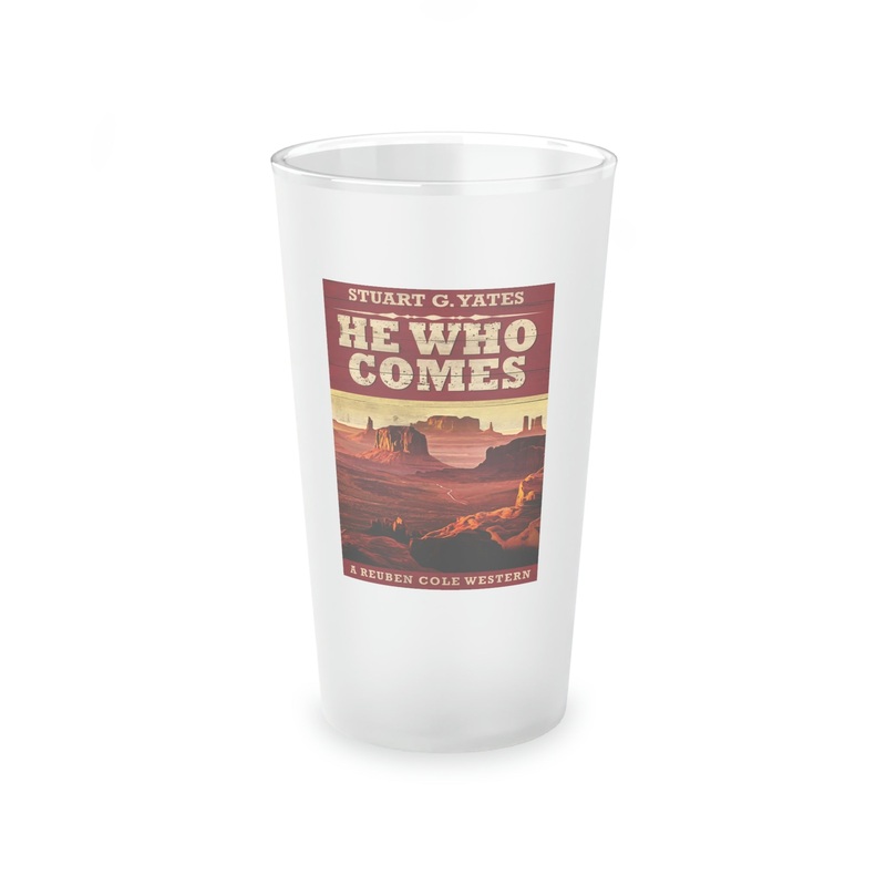This frosted matte finish pint glass is versatile and dishwasher-safe. The cover art in this pint glass is from Stuart G. Yates's book, He Who Comes.