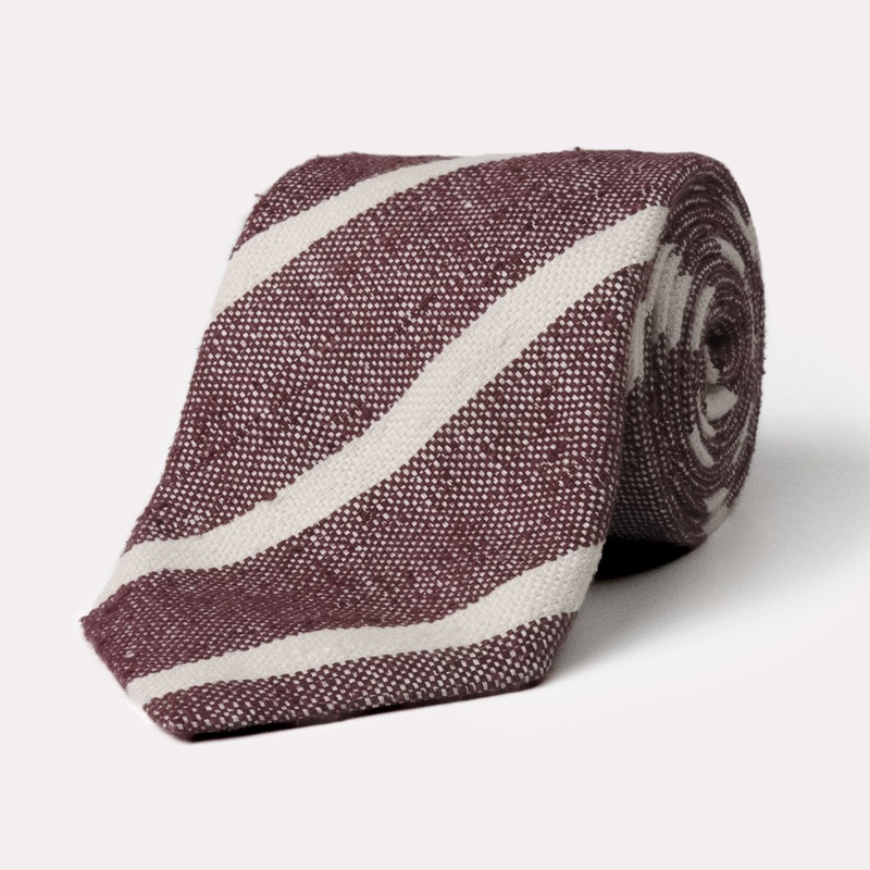 Embrace understated sophistication with our Heathered Oxblood & Ivory Stripe Silk Blend Tie. Expertly woven from a luxurious silk and linen blend, it combines the smooth elegance of silk with the natural texture of linen for a refined yet relaxed feel. Ver