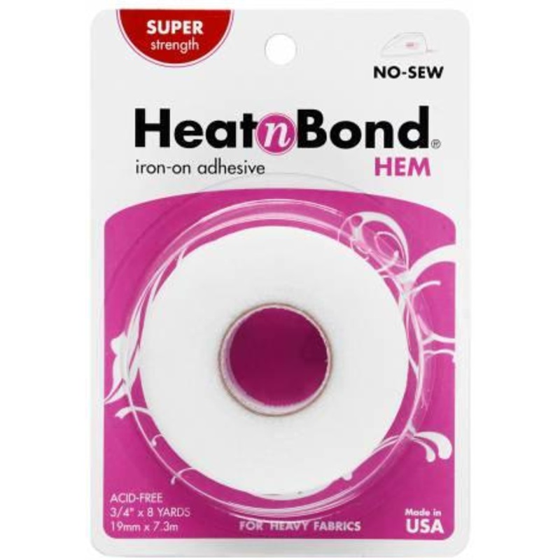 A roll of iron-on adhesive without any paper backing designed for projects that require a finished hem. This great No Sew iron-on adhesive makes hemming easy without a needle or thread. It creates clean, secure hems in seconds