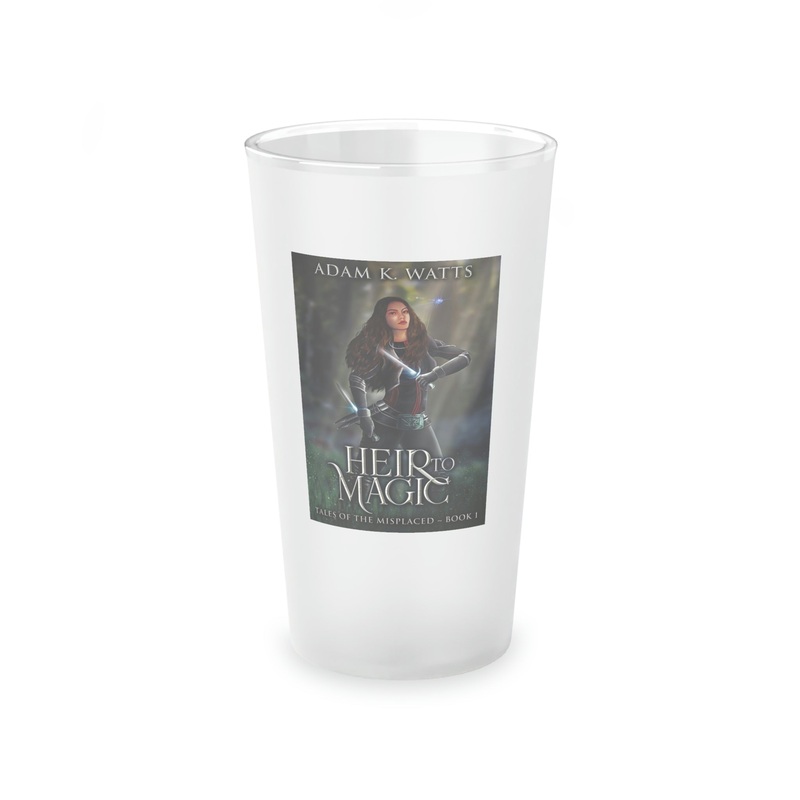 This frosted matte finish pint glass is versatile and dishwasher-safe. The cover art in this pint glass is from Adam K. Watts's book, Heir To Magic.