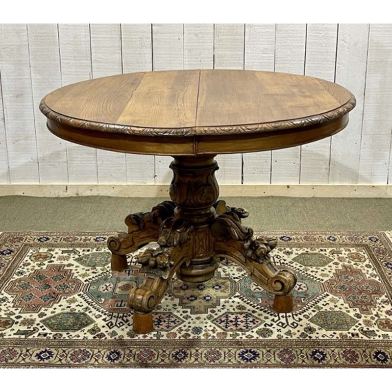 Henry II table in oak with 3 extensions – Lmin=1m06, W=1m15, H=73cm, L with 1 extension=1m40, L with 2=1m72, L with 3=2m08.