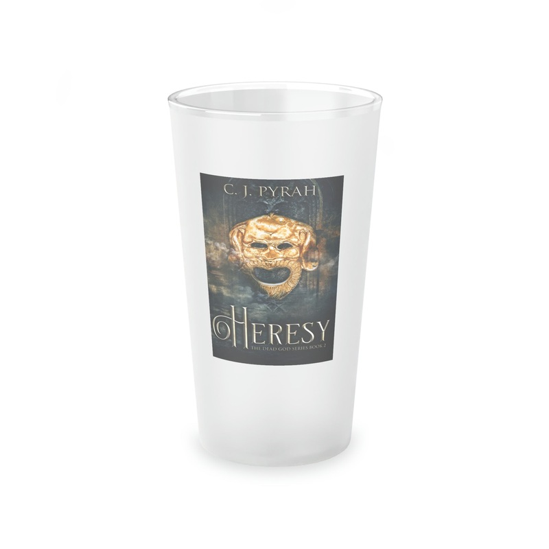 This frosted matte finish pint glass is versatile and dishwasher-safe. The cover art in this pint glass is from C.J. Pyrah's book, Heresy.