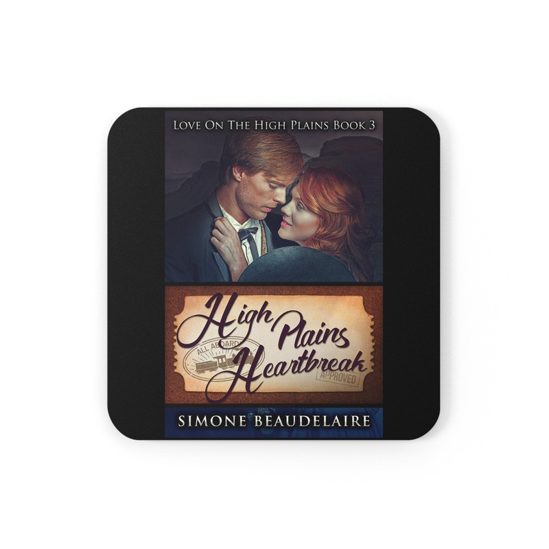 These coasters are made with a high-gloss top and feature a cork back to prevent sliding, and each order comes with a set of four coasters. The cover art in these coasters is from Simone Beaudelaire's book, High Plains Heartbreak.