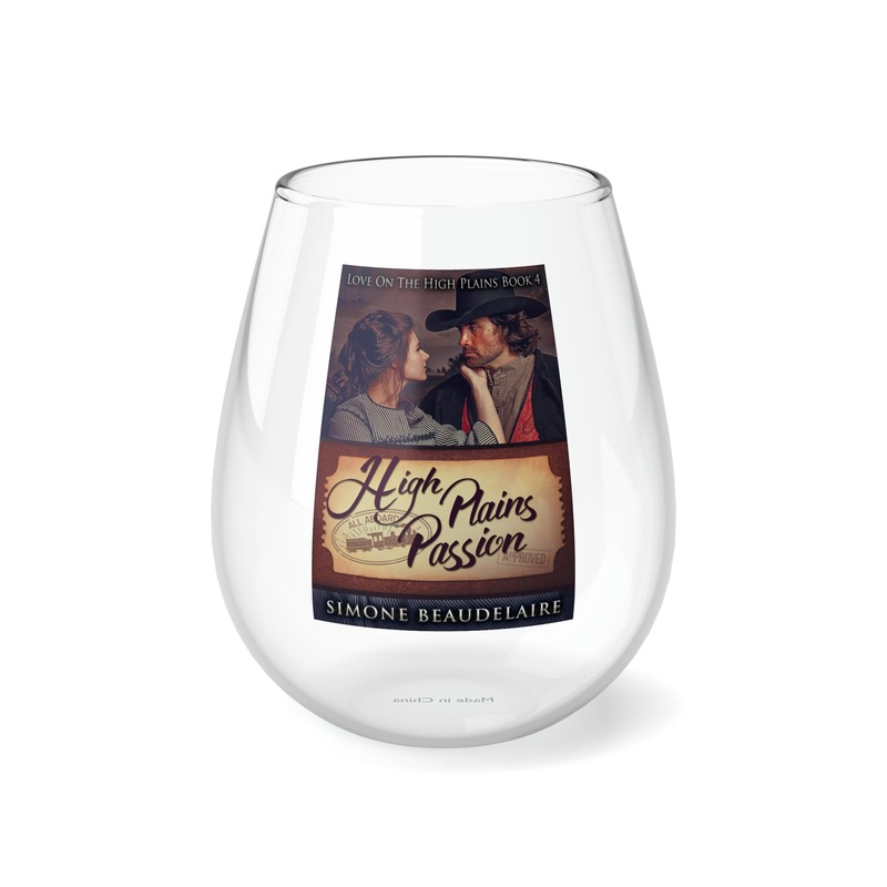 Whether it’s weddings, parties, or beautiful evenings with friends and family, this stemless glass wine fits right in. With its sleek design, each glass holds 11.75oz of your favorite wine. The cover art in this wine glass is from Simone Beaudelaire’s book, High Plains Passion.