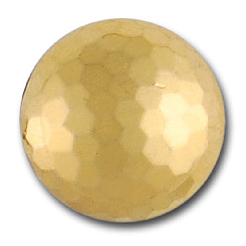 Faceted, matte metallic gold Czech glass button, with a shinier rim. Broad shank backing.