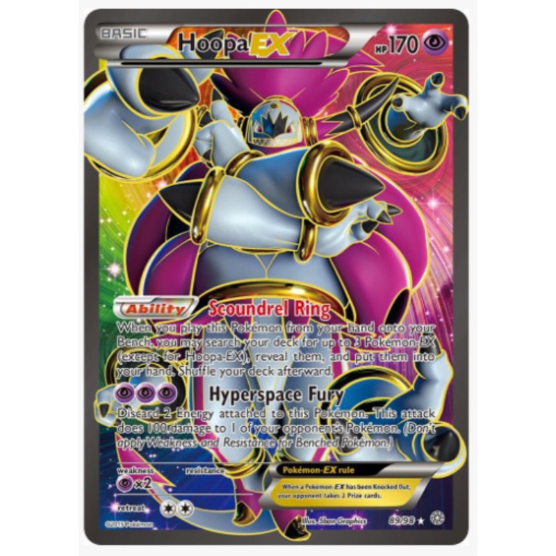 Card Number / Rarity:89/98 / Ultra RareCard Type / HP / Stage:Psychic / 170 / BasicCard Text:Ability - Scoundrel RingWhen you play this Pokemon from your hand onto your Bench, you may search your deck for up to 3 Pokemon EX(except for Hoopa EX), reveal the