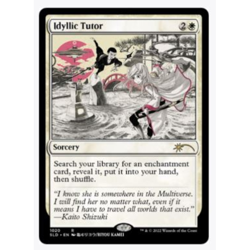 Search your library for an enchantment card, reveal it, put it into your hand, then shuffle.Rarity:R#:1020Card Type:SorceryFlavor:I know she is somewhere in the Multiverse. I will find her no matter what, even if it means I have to travel all worlds that e