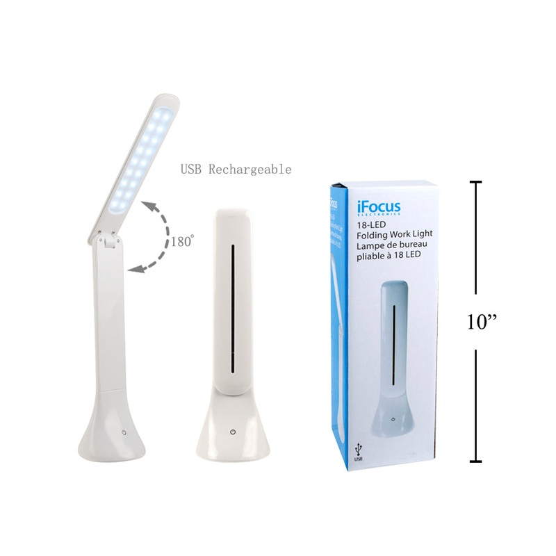 The iFocus folding work light is perfect for reading, working, and studying.You can adjust the brightness to meet various demands of environment.Features:- 18-led folding table lamp work light, very bright- 180 degree angle- 3 adjustable brightness modes-