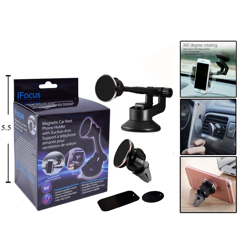 Operate your phone hands-free while on the road with this useful iFocus Magnetic Car Vent Phone Holder.It features a powerful magnetic force to ensure that your device stays steady and completely attached to the mount, even on bumpy roads.Features:- Measur