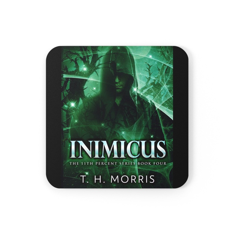 These coasters are made with a high-gloss top and feature a cork back to prevent sliding, and each order comes with a set of four coasters. The cover art in these coasters is from T.H. Morris’s book, Inimicus.