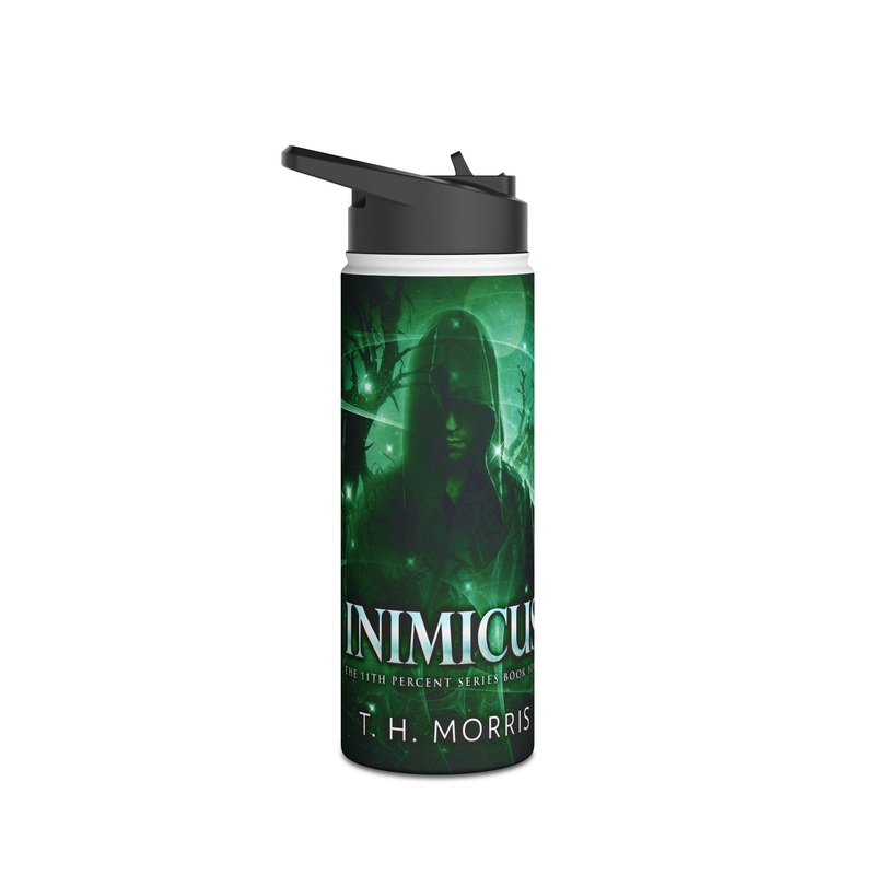 Quench your thirst in style with this 18oz stainless steel water bottle featuring a double-wall stainless steel build that keeps your drinks frosty for 24h and soothingly hot for 12h. This BPA-free, steel water bottle comes with a twist-on lid for easy sipping, making it excellent for daily use at work, at college, in the car, and beyond. The cover art in this water bottle is from T.H. Morris’s book, Inimicus.