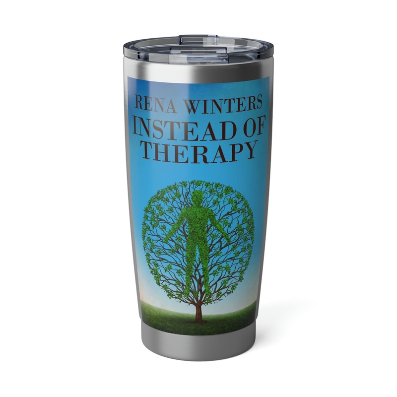 Minimize your plastic footprint with style. This tumbler fits perfectly into car cup holders, and the rubber gasket makes it spill-resistant on bumpier roads. The double-wall insulation makes sure drinks stay at the right temperature until the next pit stop. The cover art in this 20 oz tumbler is from Rena Winters’s book, Instead Of Therapy.