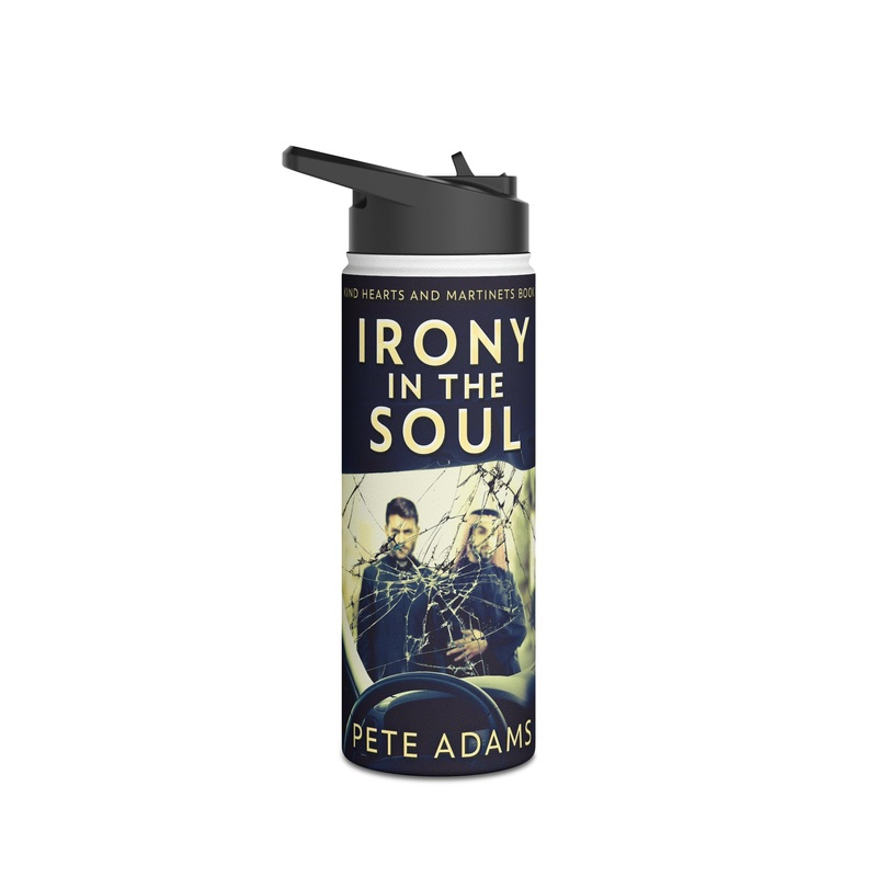 Quench your thirst in style with this 18oz stainless steel water bottle featuring a double-wall stainless steel build that keeps your drinks frosty for 24h and soothingly hot for 12h. This BPA-free, steel water bottle comes with a twist-on lid for easy sipping, making it excellent for daily use at work, at college, in the car, and beyond. The cover art in this water bottle is from Pete Adams’s book, Irony In The Soul.