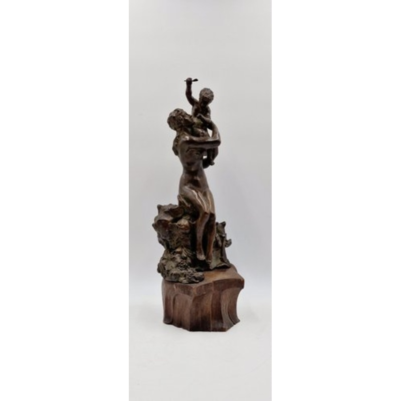 Scultura in bronzo di fattura italiana della meta di 900, raffigurante una donna con bambino. La scultura si presenta in patina originale e di ottima fattura. L’opera stata posta su una base in noce scolpita a mestiere.