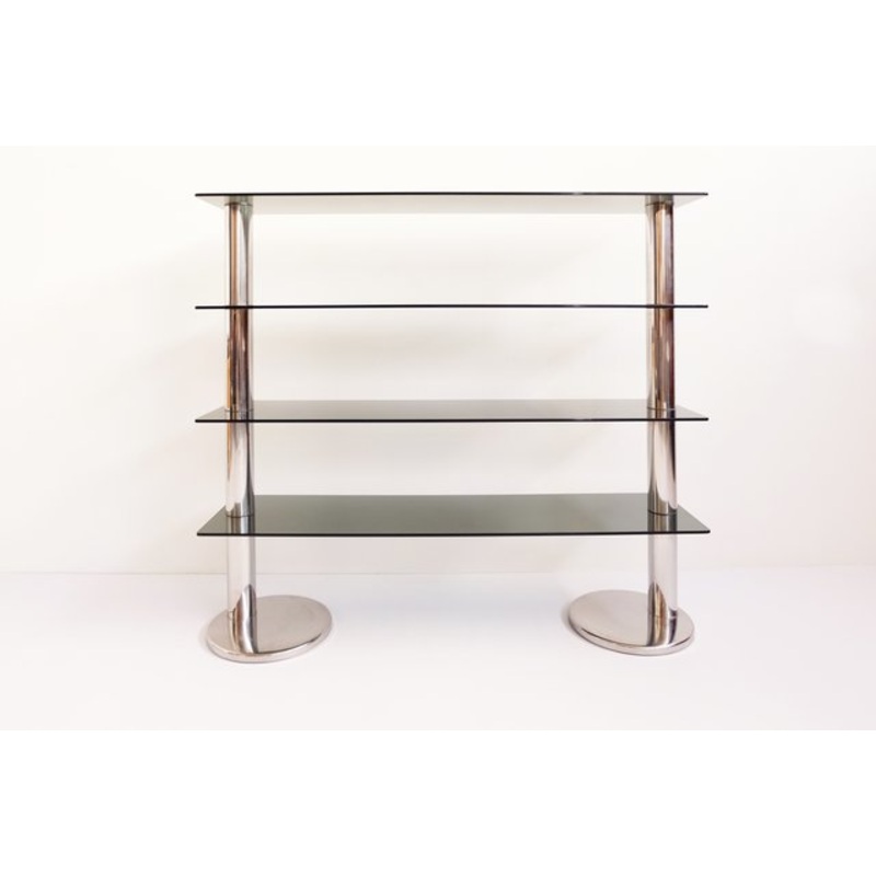 – Italian bookshelf in chromed metal and smoked glass
