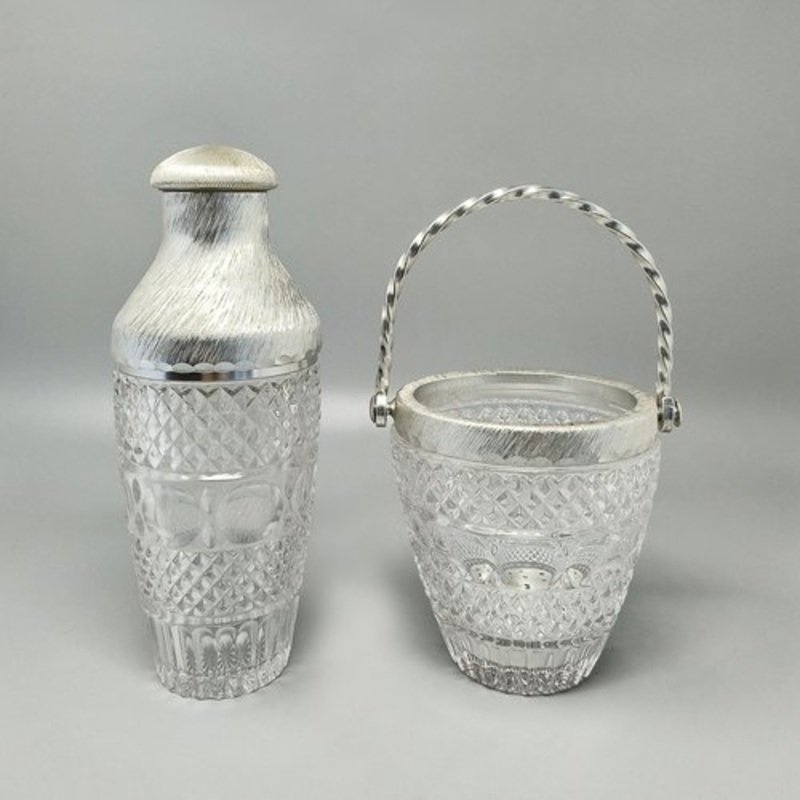 Italian Cut Crystal Cocktail Shaker and Ice Bucket from Arir, 1960s, Set of 2 for sale at Pamono