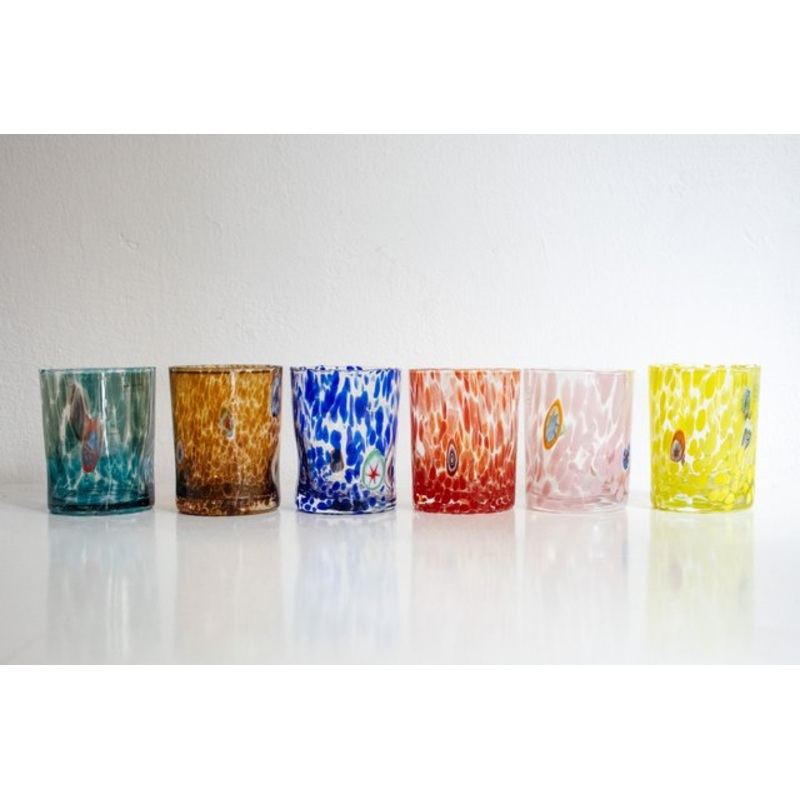 trendy set of Venetian glass glasses with Murine from Effetre di Murano. They are durable for daily use. they make the table cheerful. dishwasher safe. six different colors. excellent gift idea