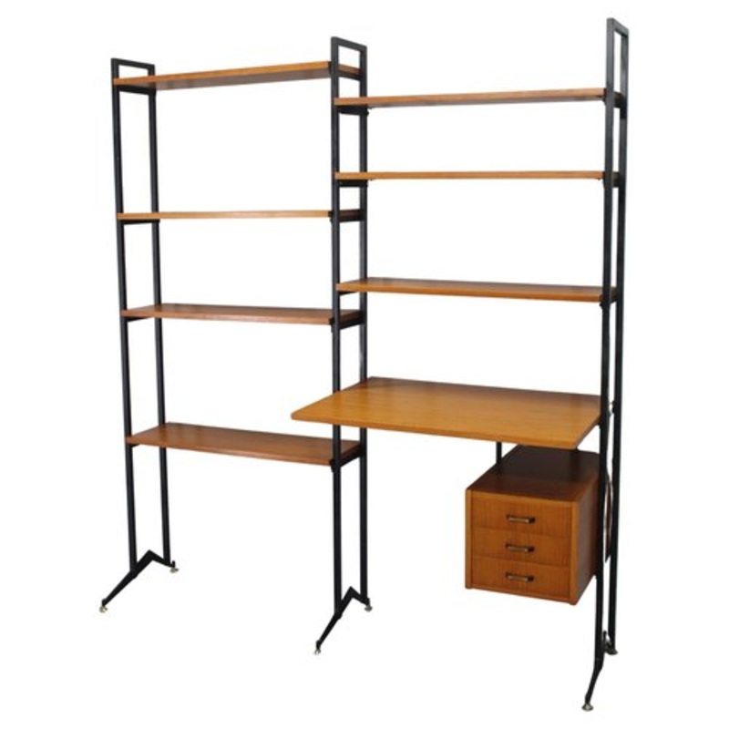 Italian Teak Shelf with Desk, 1970s for sale at Pamono