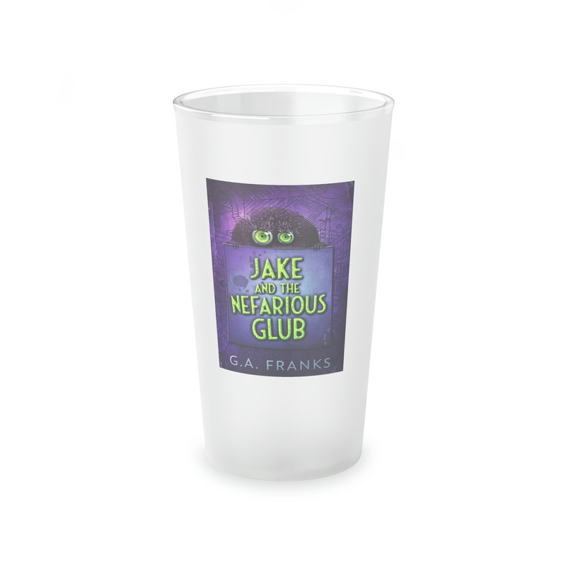 This frosted matte finish pint glass is versatile and dishwasher-safe. The cover art in this pint glass is from G.A. Franks's book, Jake and the Nefarious Glub.