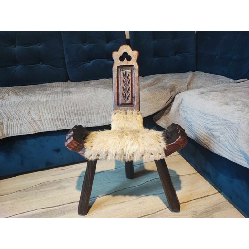 Art deco chair, wooden stool, carved, Jewish, dimensions: height to backrest 72 cm, seat width 30 cm, depth approx. 26 cm, seat height 41 cm. Design Period 1920 to 1949 Production Period 1940 to 1949, 1950 to 1959 Country of Manufacture Poland Style Art De