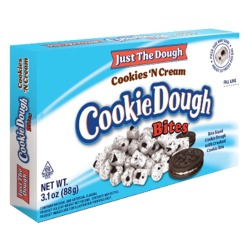 Just the Dough Cookies N Cream are yummy cubes of creamy cookie dough combined with crumbled pieces of delicious cookies. A perfect combination for dough lovers!