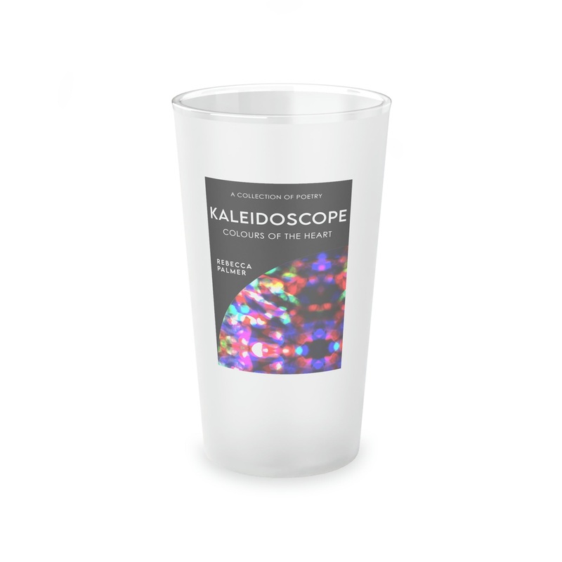 This frosted matte finish pint glass is versatile and dishwasher-safe. The cover art in this pint glass is from Rebecca Palmer's book, Kaleidoscope - Colours Of The Heart.