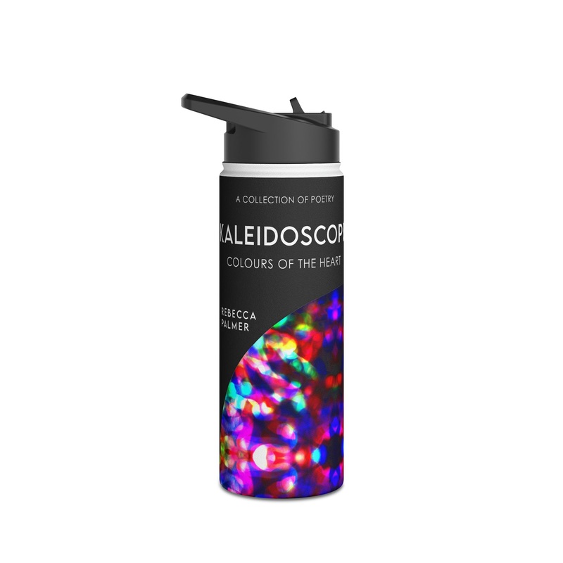 Quench your thirst in style with this 18oz stainless steel water bottle featuring a double-wall stainless steel build that keeps your drinks frosty for 24h and soothingly hot for 12h. This BPA-free, steel water bottle comes with a twist-on lid for easy sipping, making it excellent for daily use at work, at college, in the car, and beyond. The cover art in this water bottle is from Rebecca Palmer’s book, Kaleidoscope – Colours Of The Heart.