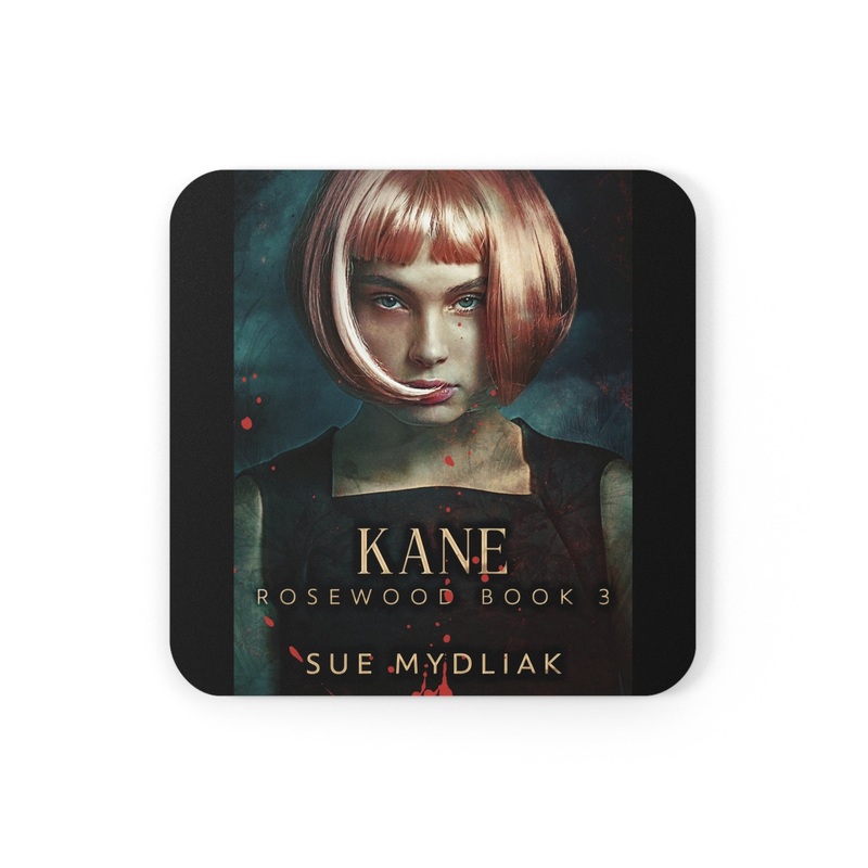 These coasters are made with a high-gloss top and feature a cork back to prevent sliding, and each order comes with a set of four coasters. The cover art in these coasters is from Sue Mydliak's book, Kane.