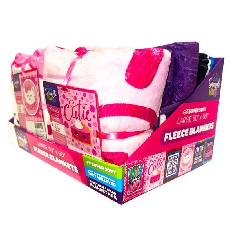 Printed Blanket display includes kidsthemed plush blankets. 60 X 50" blanket with patterns to match your playfulstyle. Showcasethisproductin our PRINTED BLANKETor KIDS PLUSH FLOOR DISPLAYS Add a variety to your floor display with these additional blanket s