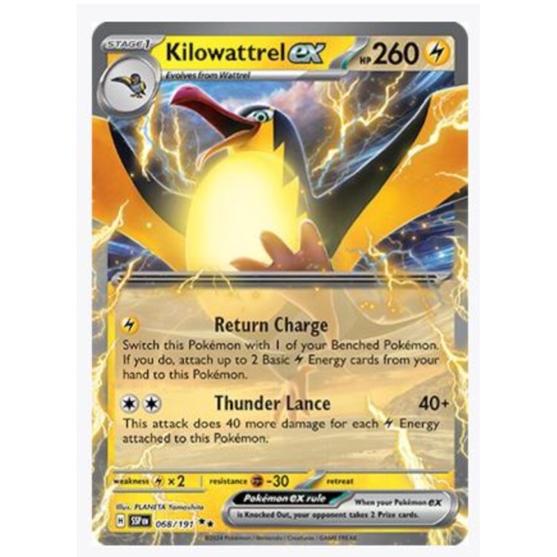 Card Number / Rarity:068/191 / Double RareCard Type / HP / Stage:Lightning / 260 / Stage 1Attack 1:[L] Return ChargeSwitch this Pokemon with 1 of your Benched Pokemon. If you do, attach up to 2 Basic Lightning Energy cards from your hand to this Pokemon.At