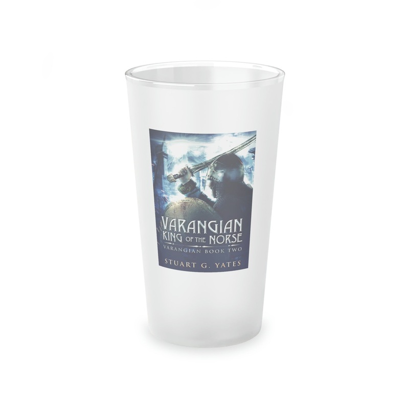 This frosted matte finish pint glass is versatile and dishwasher-safe. The cover art in this pint glass is from Stuart G. Yates's book, King of the Norse.